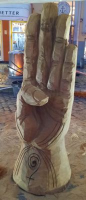 Am 25. November wird um 15 Uhr zwischen Kidderminster-Brücke und der Beruflichen Schule in Husum unsere Hand-Skulptur aufgestellt.